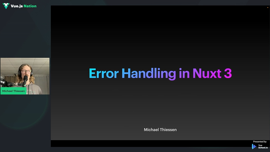 Michael Thiessen, the official instructor for Mastering Nuxt 3, was up next. Micheal offered us a preview of his Mastering Nuxt 3 course by introducing us to various routing principles as well as the Nuxt 3 error component for handling client-side error by isolating problems in our Nuxt application. The components may capture any component problems, allowing us to manage our errors more effectively rather than causing our entire application to crash.