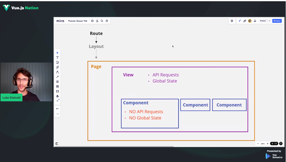 The last speaker for the day and the Vue.js Nation conference was Luke Diebold, core member of the Quasar team, with an intriguing talk on the Quasar Framework. In a live coding session, Luke discussed how we design components using Quasar as well as certain practices when dealing with files in our projects to offer your code better organization and increase comprehension of your code for future developers.