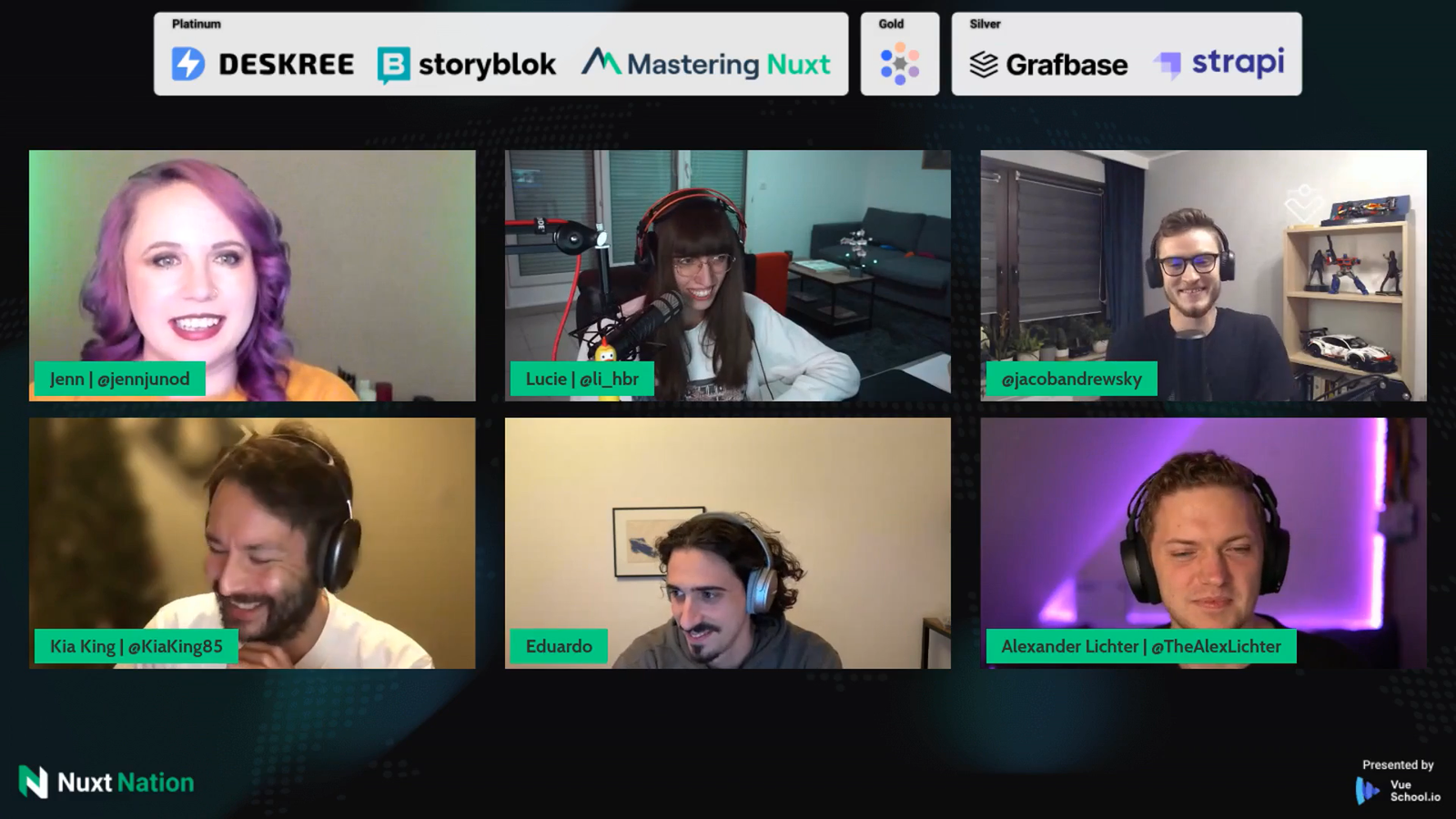 The sessions covered a variety of events, including a new stable release for Nuxt 3, live discussion on Vite and Nuxt, creating mobile apps with Nuxt, and helpful tips for performance testing and application development.