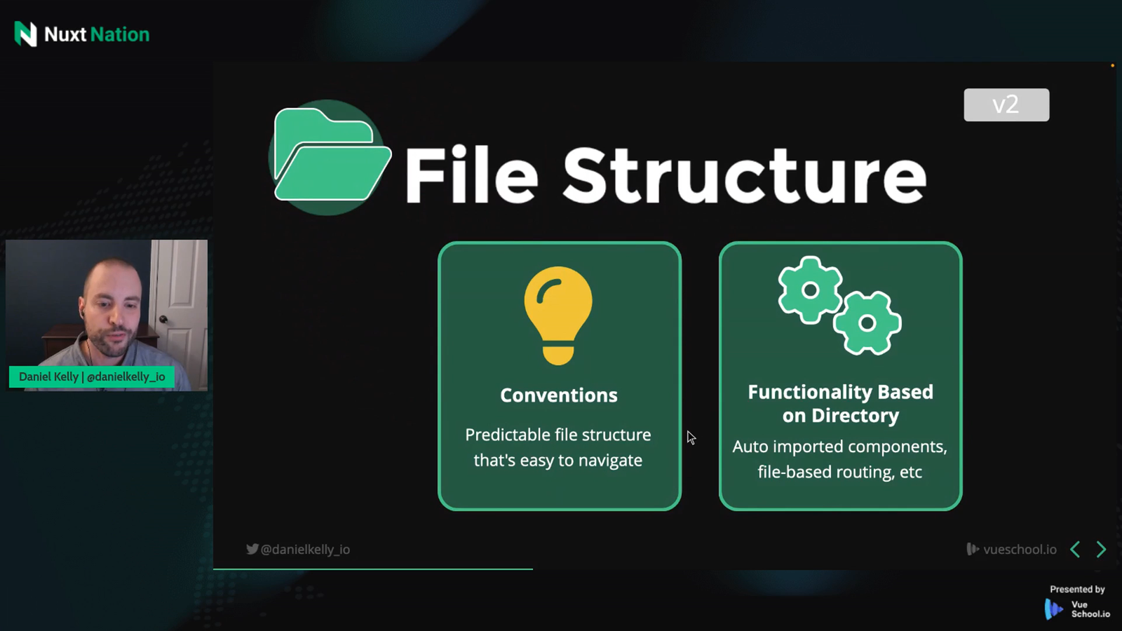 Daniel then introduced us to some of the changes in the folder structure in the new Nuxt 3 like