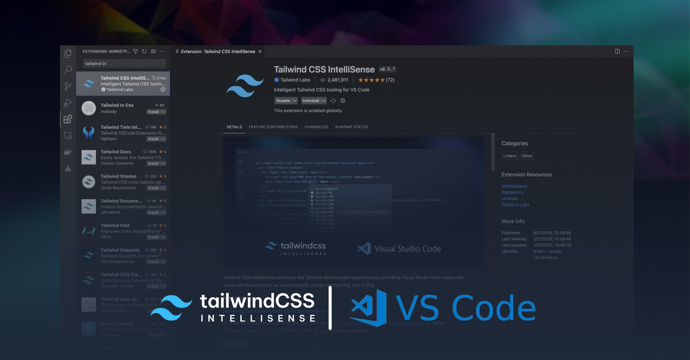 Tailwind CSS has become a fast growing CSS framework choice to developers since it’s introduction. Developers are able add styling to their web application quickly without leaving their template or html section. The official Tailwind CSS IntelliSense extension for Visual Studio Code enhances the Tailwind development experience by providing users with advanced features such as :