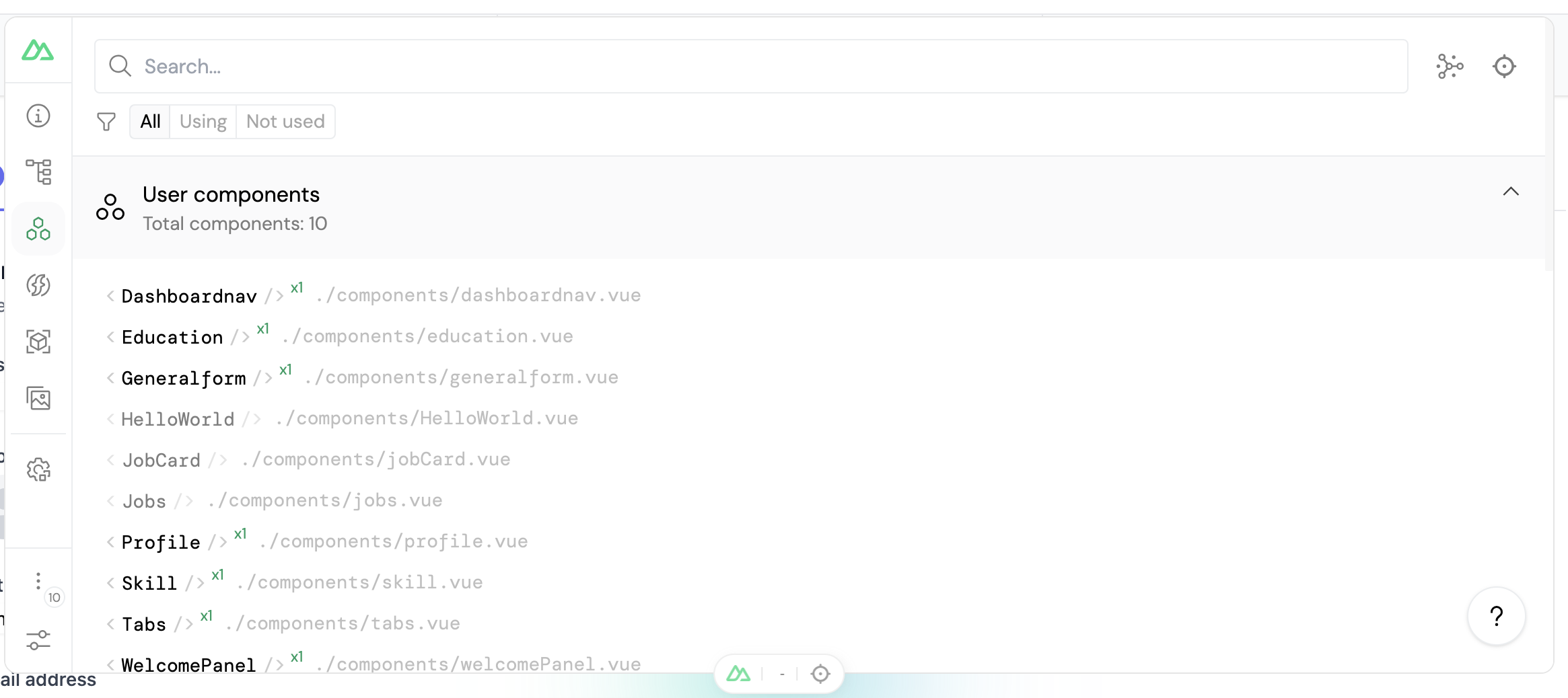 The Components tab within Nuxt DevTools offers an extensive overview of all the components within your application, encompassing those crafted by the user, dynamically registered, provided by Nuxt, or sourced from third-party libraries.