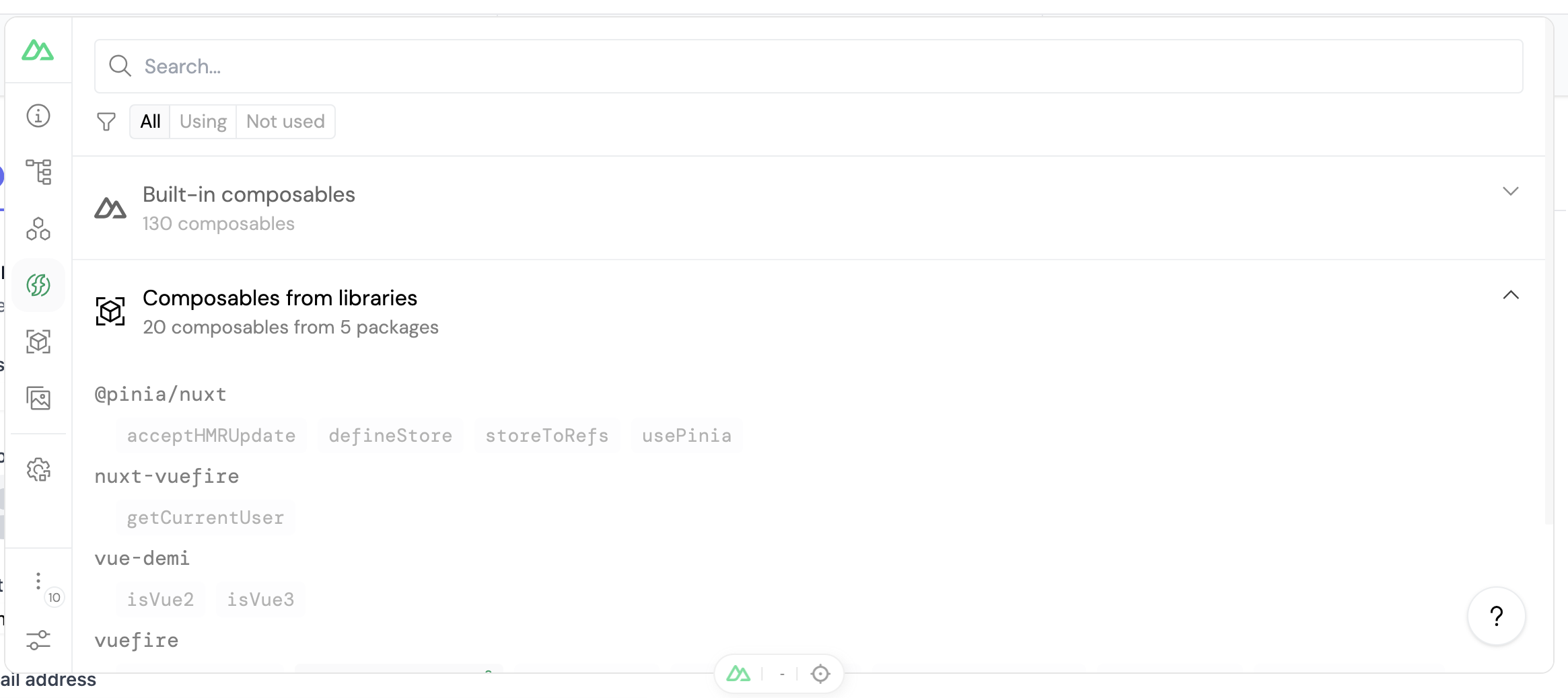 The imports view offers comprehensive information about the composables in your project. It presents all the composables available, whether they originate from Nuxt, other libraries, or your own custom composables. It distinguishes those that you are currently referencing and shows you where you are importing them. This section is a valuable resource for discovering Nuxt's built-in composables, allowing you to harness their functionalities to enhance your project.