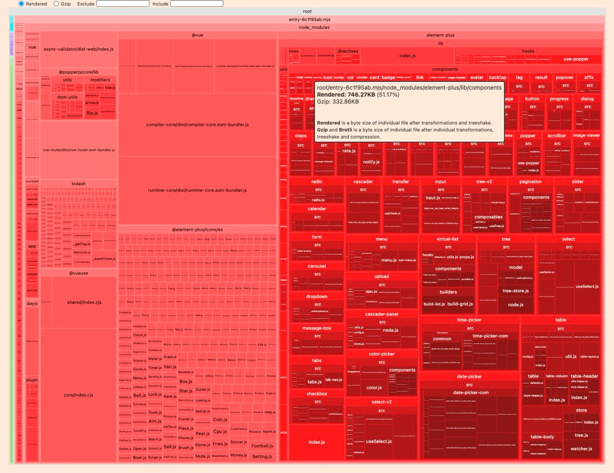 For example, in the below image, we see that UI Library Element UI is responsible for more than half of our bundle size ? This can definitely be broken down into smaller import statements.