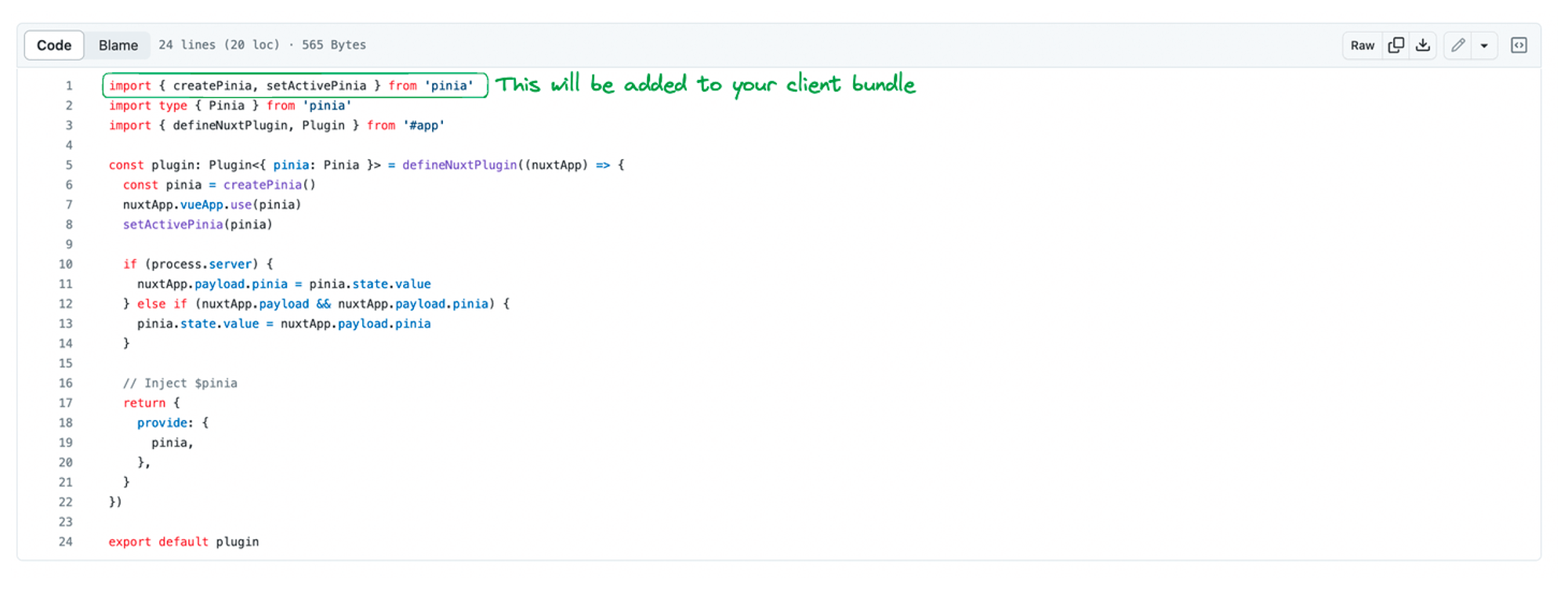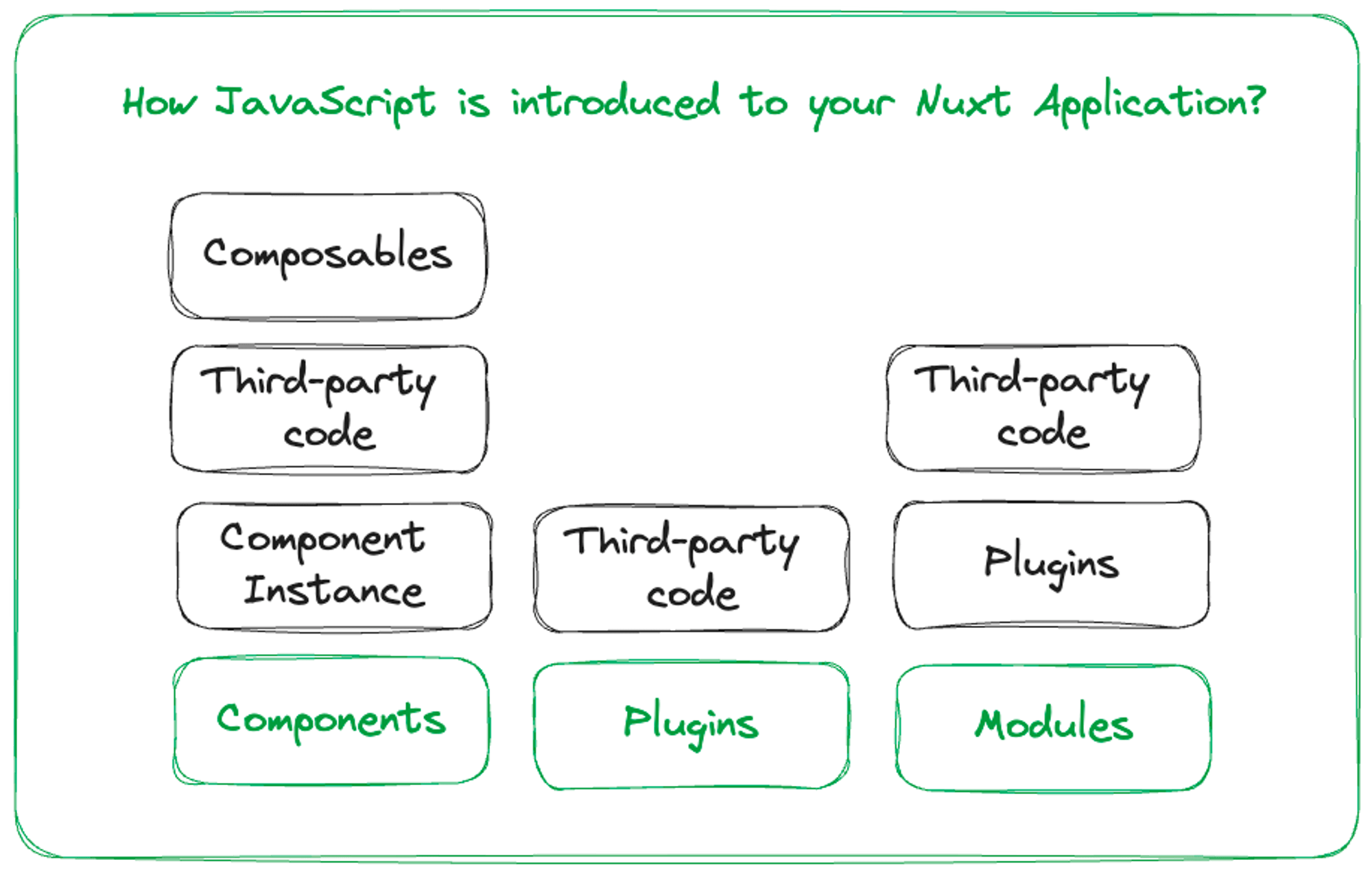 There are generally two main ways in which new code is being introduced to your Nuxt.js application: