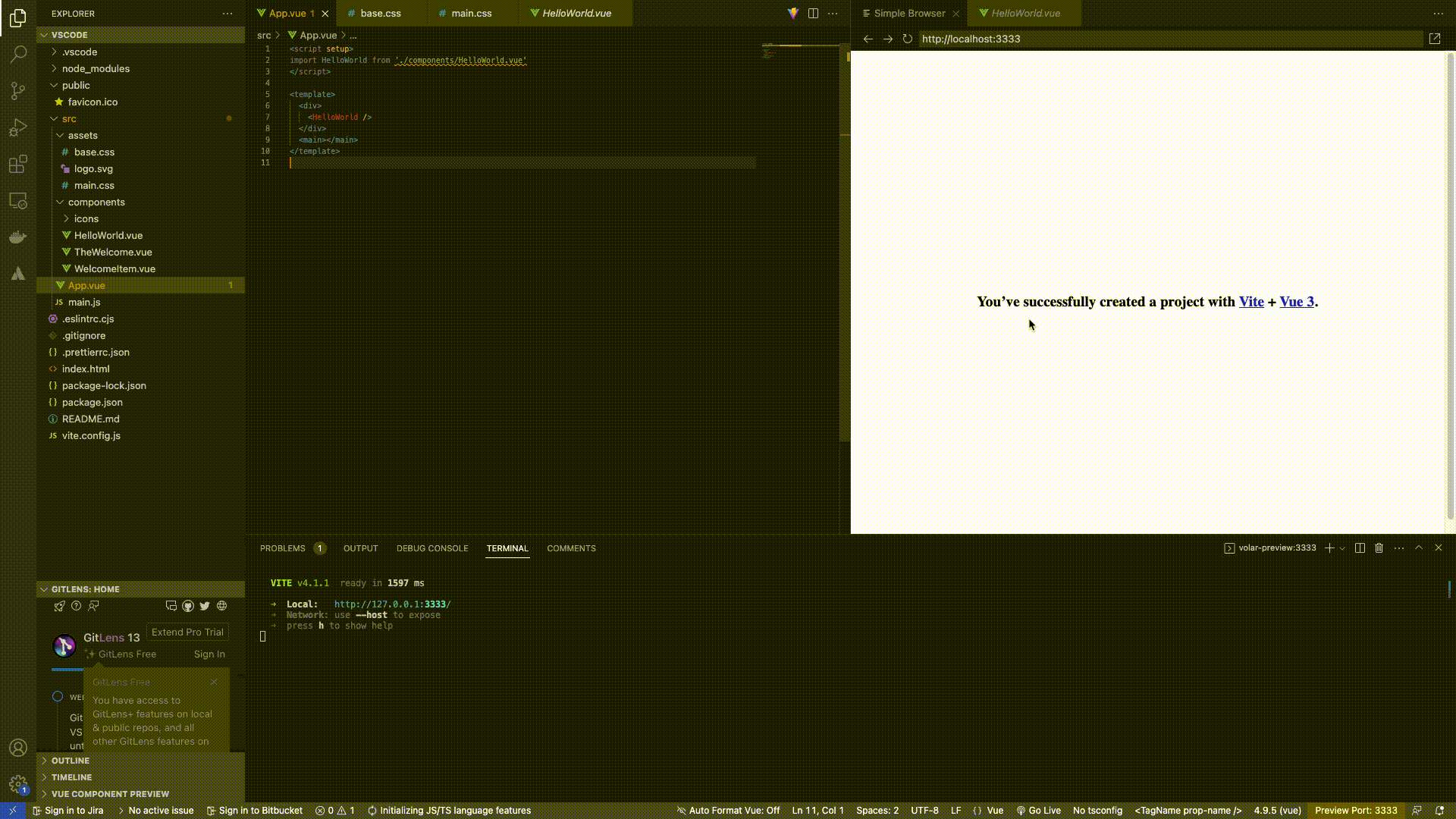 Volar is the recommended language support tool for Vue.js 3. It helps you understand your Vue.js code as well highlighting some syntax errors in your Vue.js code. It’s an essential tool for Vue.js developers. With the volar extension installed in your VS code, you have access to some powerful features added to the normal VS code features.